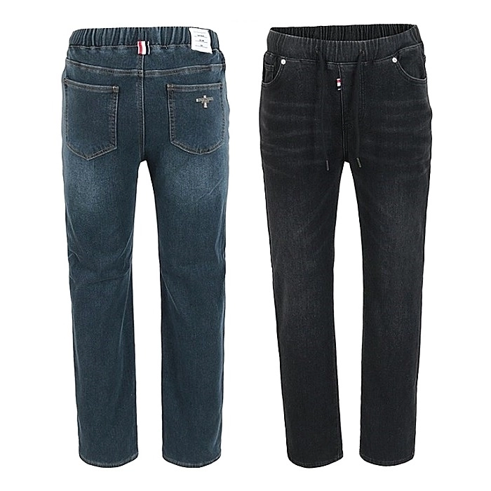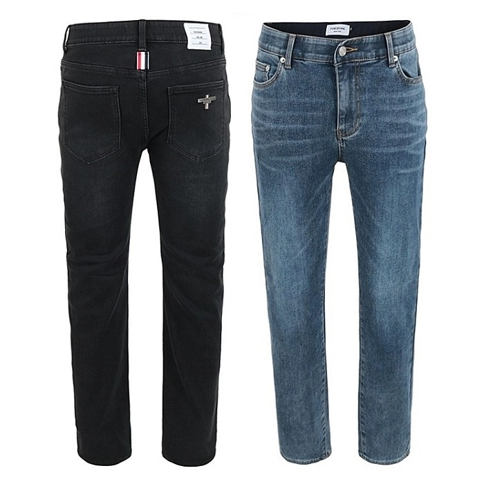 THOM BROWNE 스틸로고 화이트패치 밍크융 흑청 슬림진